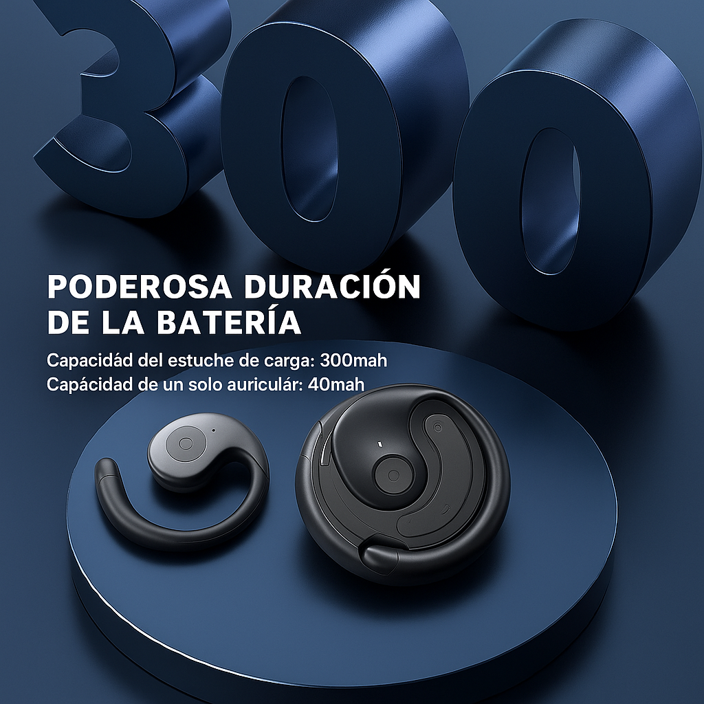 Cada carga ofrece hasta 5 horas de uso continuo, y con el estuche portátil puedes extender varias cargas adicionales.