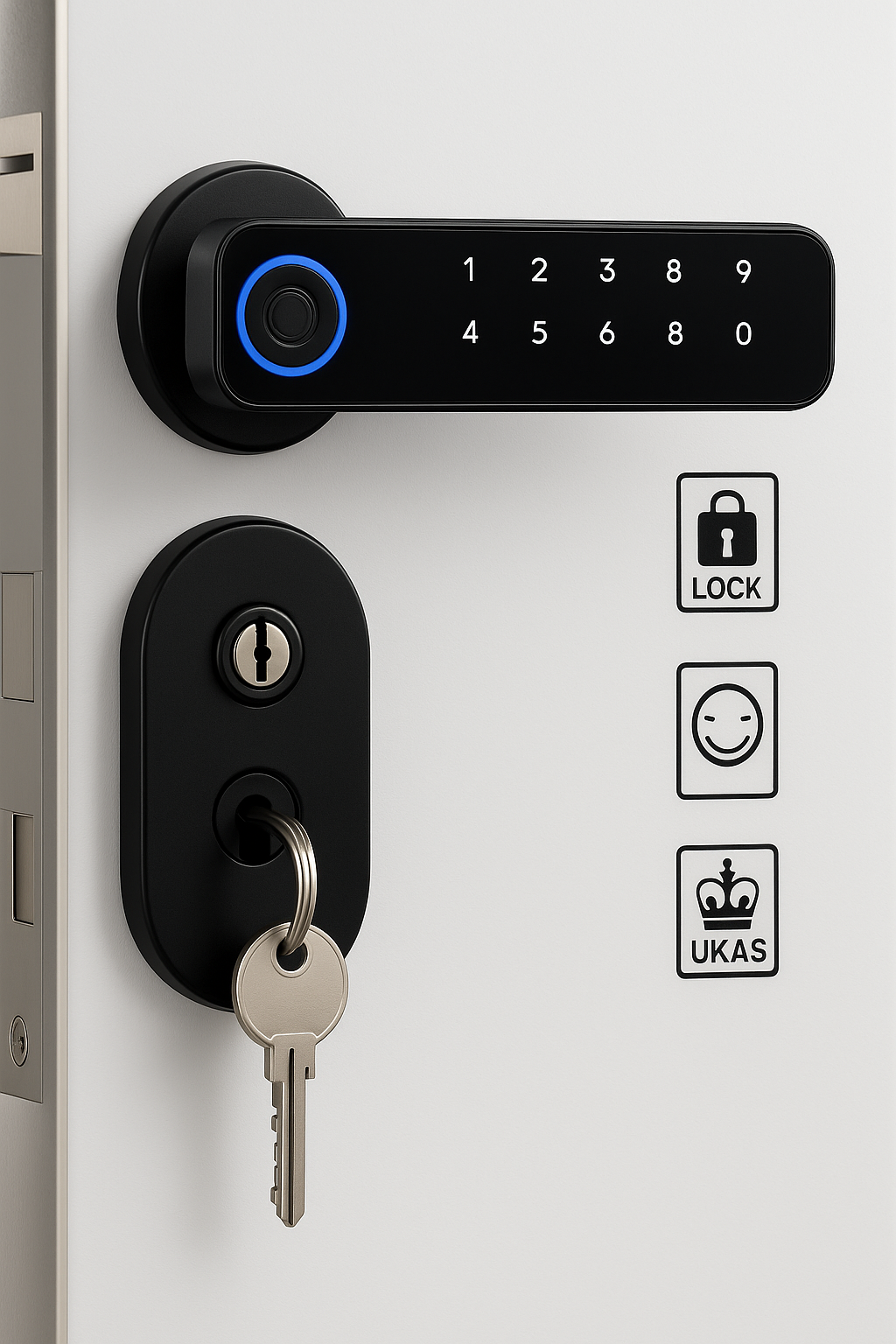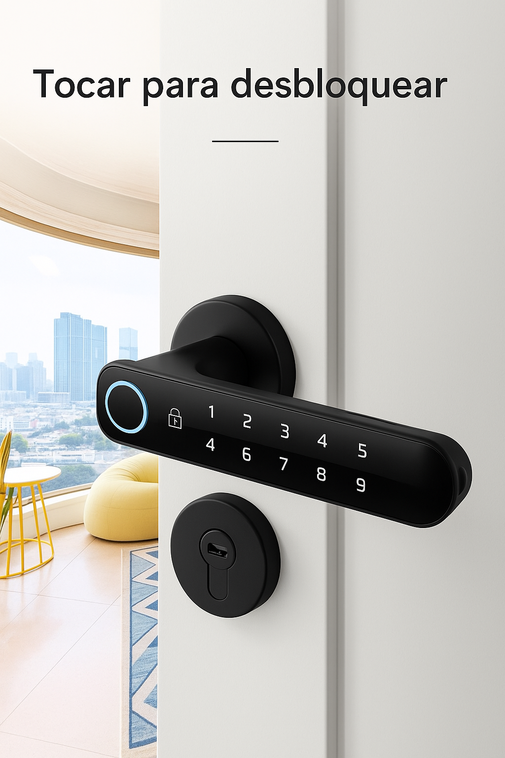 - La cerradura inteligente asegura tu puerta con huella digital, contraseña o app. Rápida, práctica y elegante, ideal para mantener lo que más valoras siempre protegido.