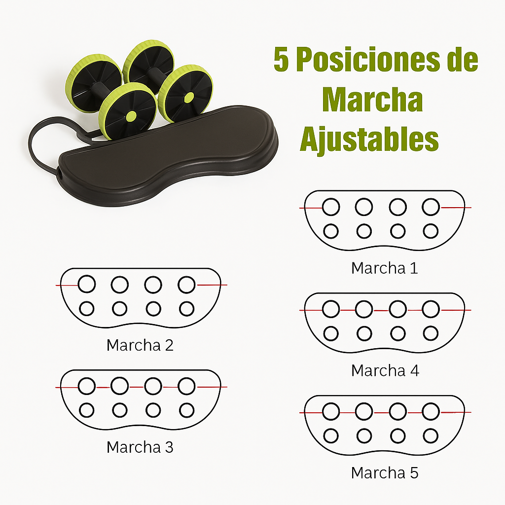 - Su diseño de doble rueda ofrece un equilibrio óptimo, reduciendo la presión en la espalda baja y ayudándote a activar correctamente abdominales, cintura y brazos.