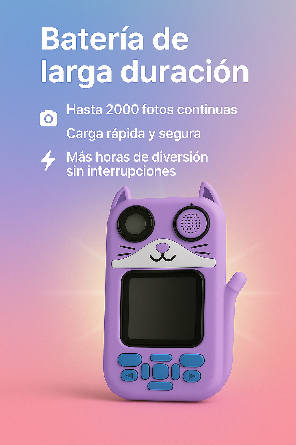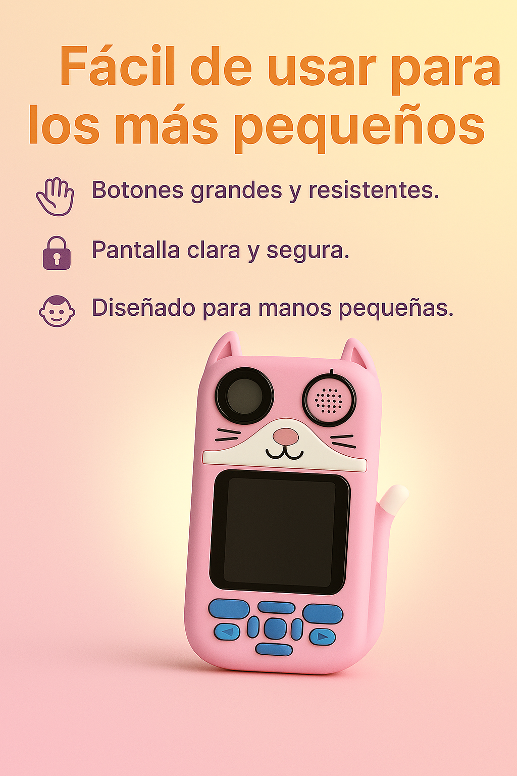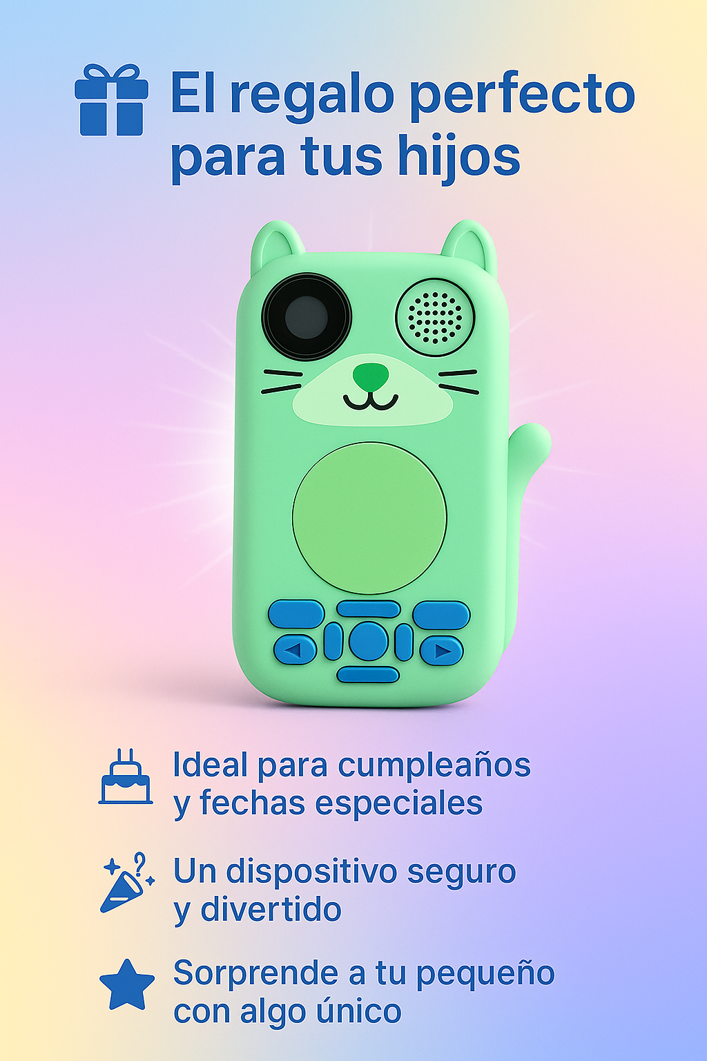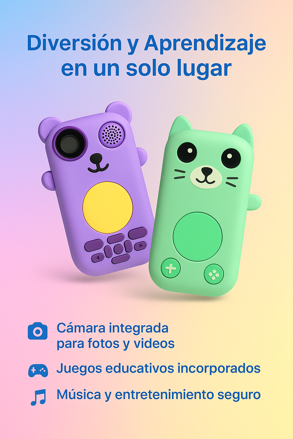 Viene con juegos interactivos que estimulan habilidades cognitivas y coordinación, además de reproductor MP3. También cuenta con un sistema de hábitos que ayuda a los niños a desarrollar disciplina cotidiana.