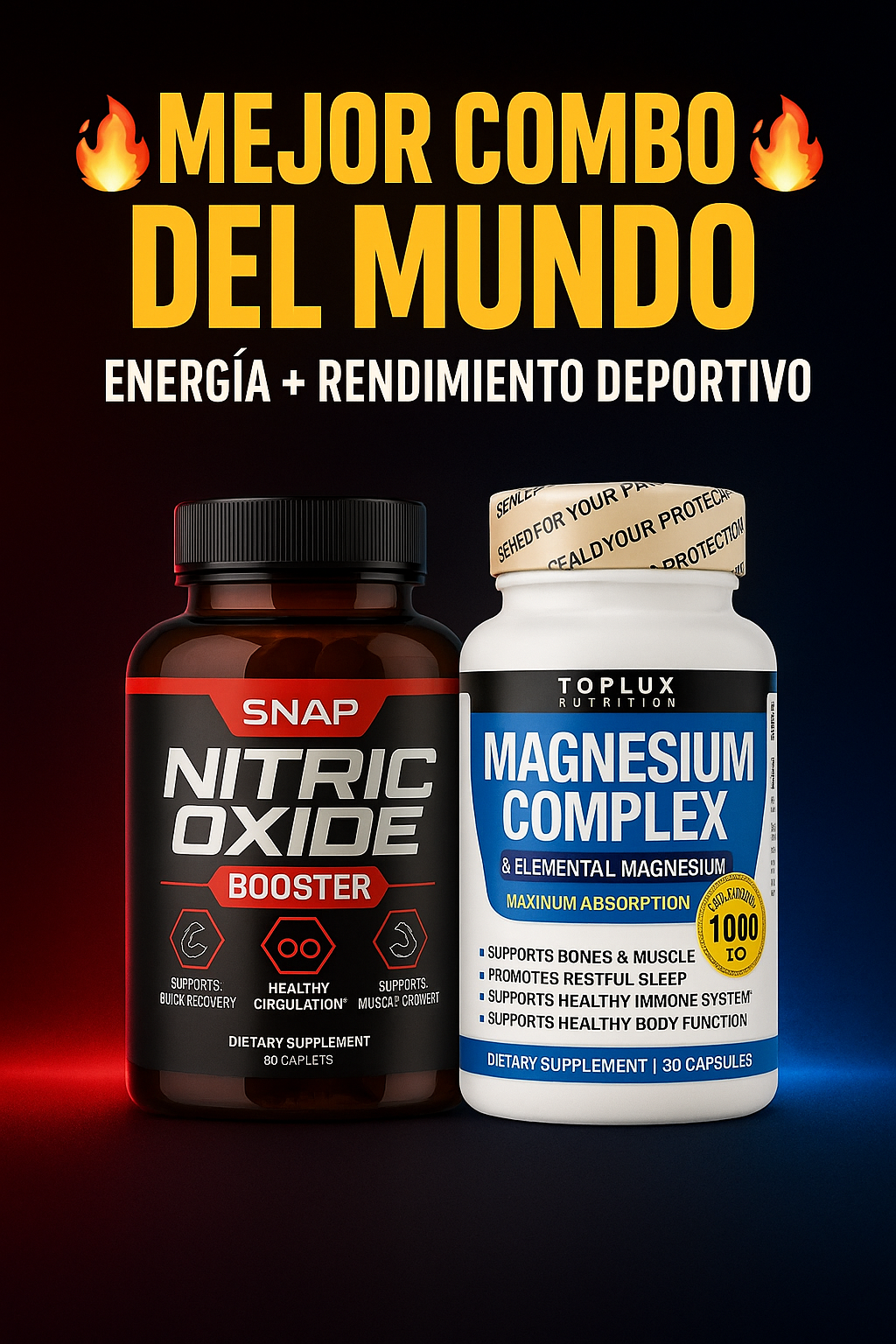 • 🕒 Modo de consumo: Magnesium Complex → 1 cápsula al día.Nitric Oxide Booster → 2 cápsulas al día.