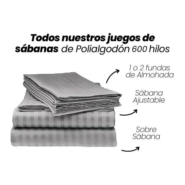 Incluye una sábana ajustable, una sobresábana y dos fundas de almohada.