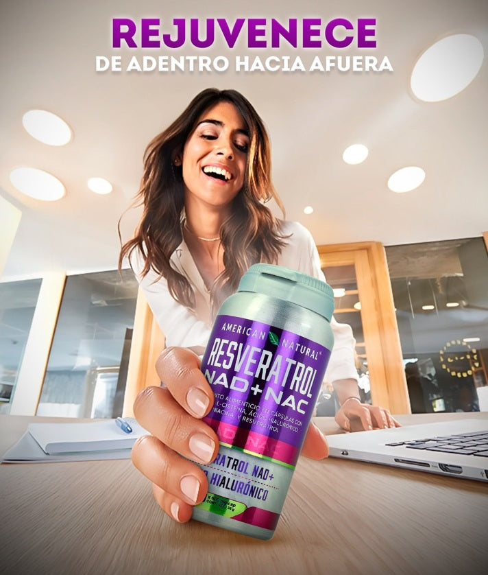 - 💊 1 cápsula, 2 veces al día: Con Resveratrol NAD+NAC de alta potencia que protege las células, favorece la regeneración celular, fortalece el sistema inmunológico y promueve una piel más sana y radiante.