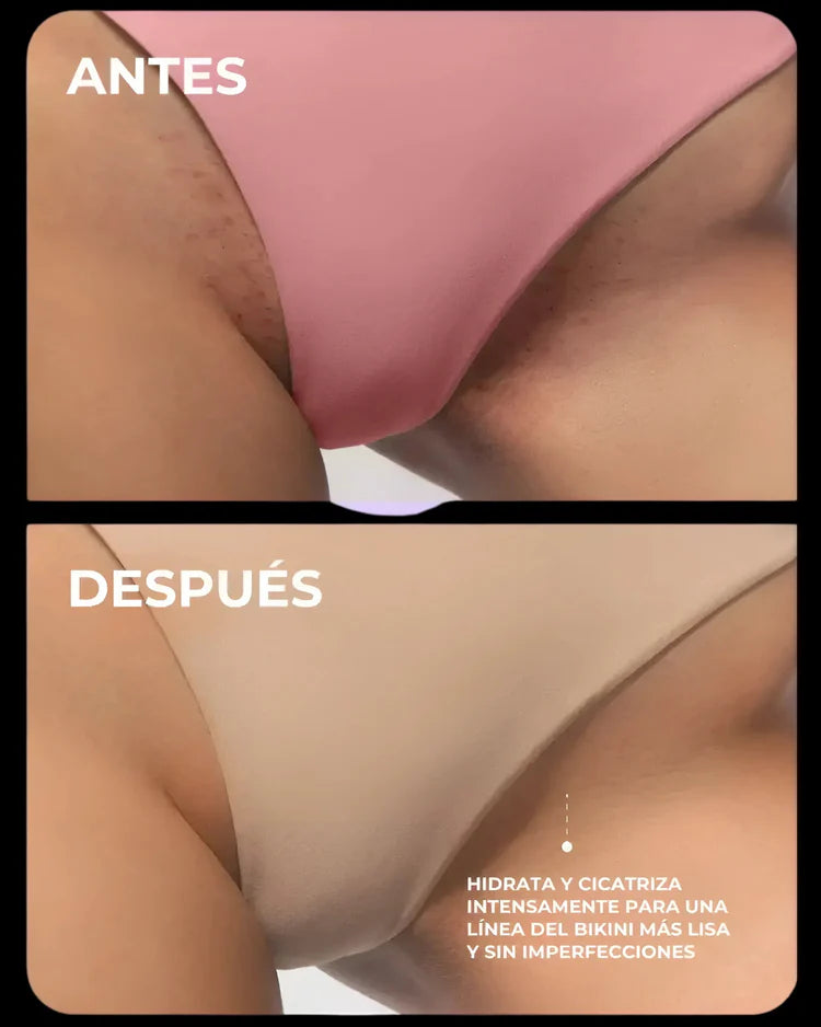 - Puede aplicarse en todo el cuerpo, pero ha sido formulado especialmente para tratar tus zonas más sensibles: zona íntima, axilas, entrepierna y glúteos; que es en donde la piel tiende a oscurecerse, irritarse o presentar foliculitis (vellos "encarnados").