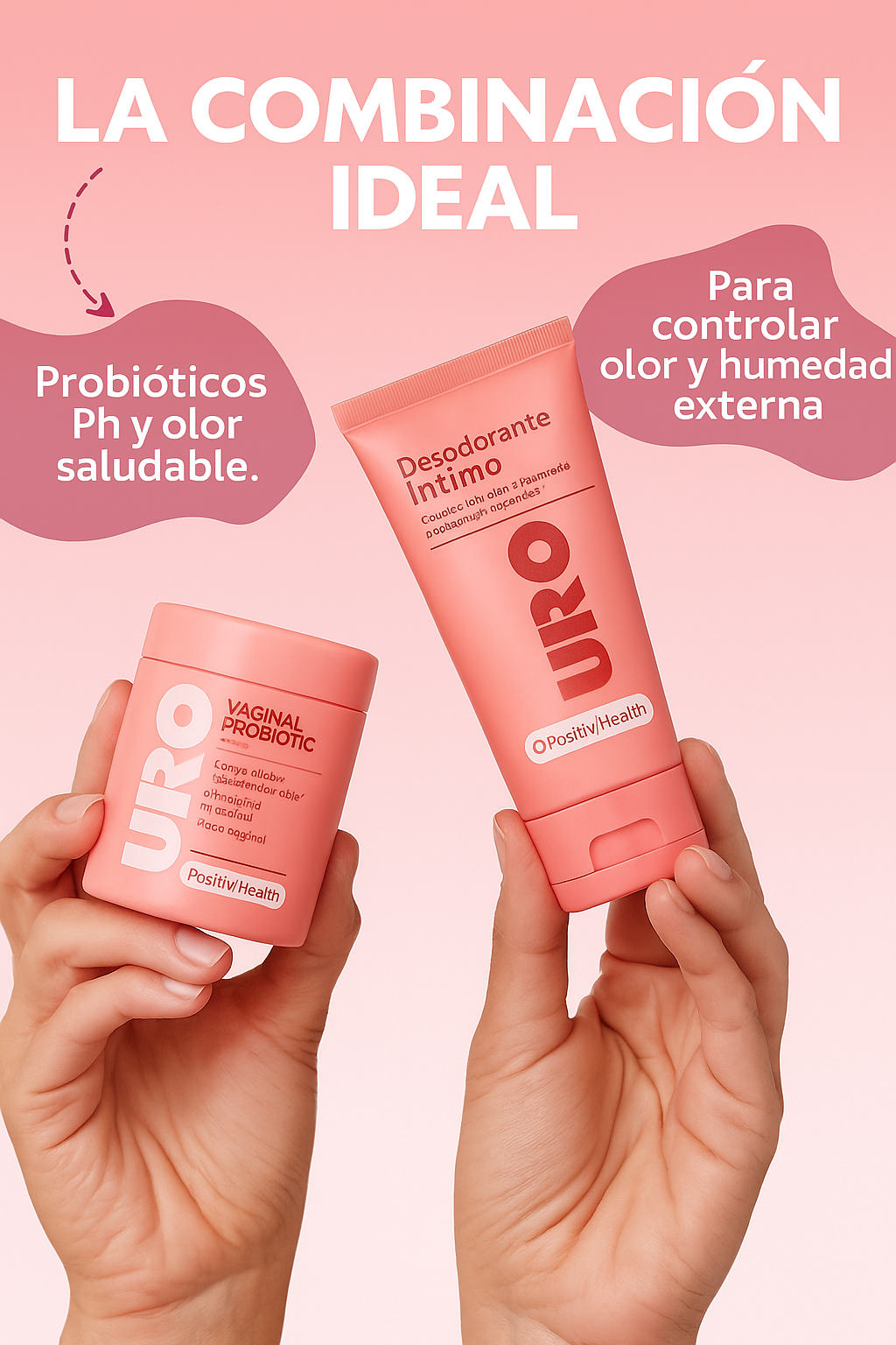 Incluye los Probióticos Vaginales URO (cápsulas) y el Desodorante en Crema URO, diseñados para trabajar en conjunto: frescura y protección por fuera + equilibrio y confianza desde adentro.